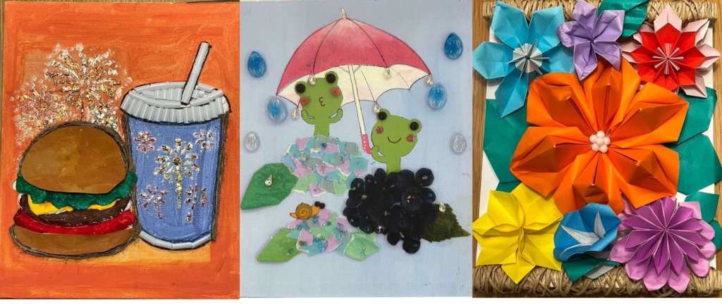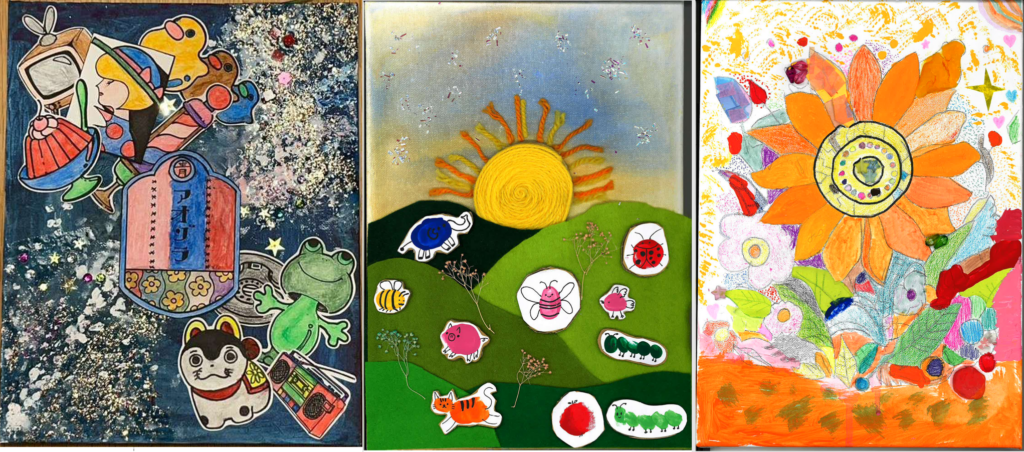 絵の具だけでなく立体的な素材もふんだんに使用し、アートのお題もすべて自由。