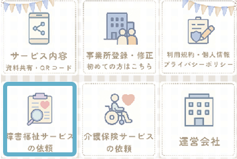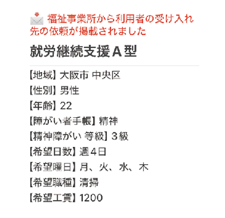 事業所登録の対応地域(利用者さんのお住まい)以外からは通知が届きません。