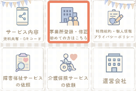 障害福祉サービスの場合のみ、上記メニューから利用者登録をします